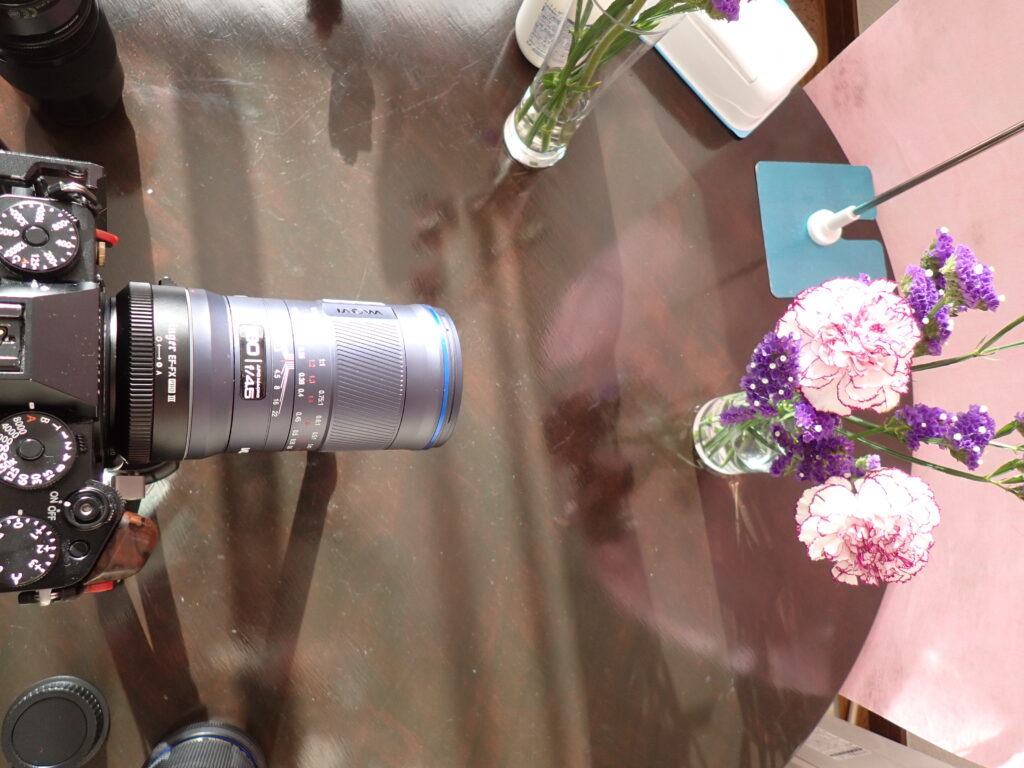 Laowaはマウントアダプタ足して、XF80mmと同じくらいの長さ、径はもっと細いので自分のカメラバッグだと寝かさないで縦に入ってしまうのも非常に扱いやすいです。